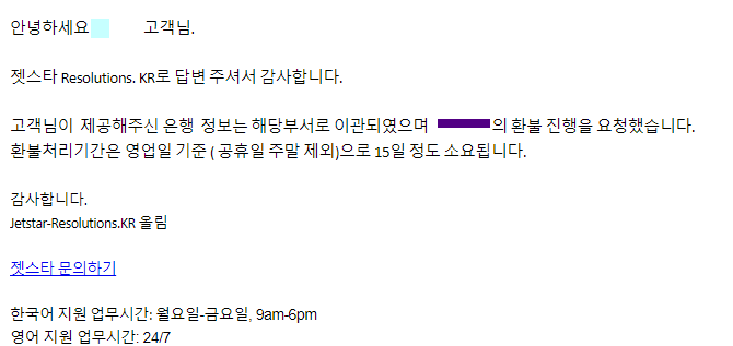 - 젯스타항공 환불에는 한달 정도 걸릴 수 있다